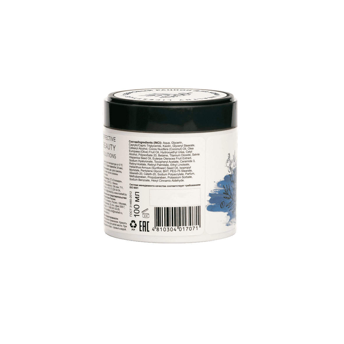 Aqua, Glycerin, Caprylic/Capric Triglyceride, Kaolin, Glyceryl Stearate, Cetearyl Alcohol, Cocos Nucifera (Coconut) Oil, Olea Europaea (Olive) Fruit Oil, Hydroxyethyl Urea, Cetyl Alcohol, Polysorbate 20, Betaine, Titanium Dioxide, Salvia Hispanica Seed Oil, Euterpe Oleracea Fruit Extract, Sodium Hyaluronate, Tocopheryl Acetate, Ceramide 3, Retinyl Acetate, Retinyl Palmitate, Ethyl Linoleate, Helianthus Annuus (Sunflower) Seed Oil, Isopropyl Myristate, Pentylene Glycol, BHT, PEG-75 Stearate, Steareth-20, Ceteth-20, Sodium Polyacrylate, Parfum, Methylparaben, Propylparaben, Potassium Sorbate, Sodium Benzoate, Hexyl Cinnamic Aldehyde.